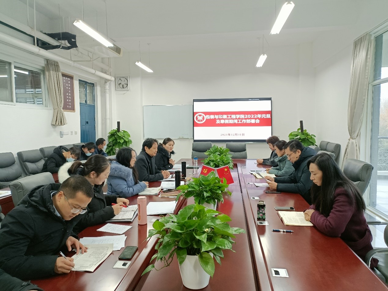 12月31日上午,太阳集团城娱8722在龙子湖校区尚严楼C217会议室召开2022年元旦及寒假期间工作部署会议。会议由学院党委书记杨军主持,学院全体教师参加会议。