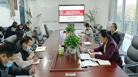 会上,张岩领学了《关于加强和改进新时代师德师风建设的意见》和《新时代高校教师职业行为十项准则》,同时列举了教育部公开曝光第七批8起违反高校教师职业行为十项准则典型案例,并以实际案例警示和教育大家,要求用良好的师德师风带动良好的教风学风,要认真贯彻师德师风教育精神,做“四有”好老师。
