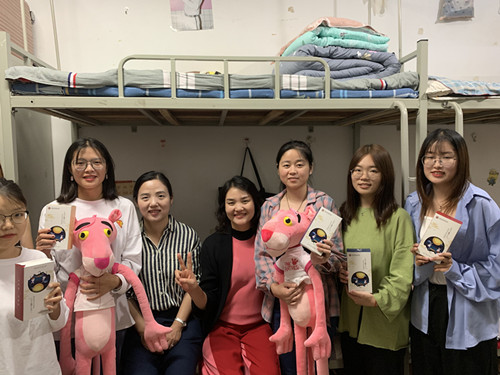 当天中午,副书记祝聪楠、办公室副主任季文君和各班双导师分别深入17、18、19级学生宿舍,为每一位学生发放了月饼。发放过程中,老师们详细询问了同学们平时的学习、生活情况,大家纷纷对老师们的亲切关怀表示了感谢,一边品尝月饼一边畅聊日常,并与老师们亲切合影。
