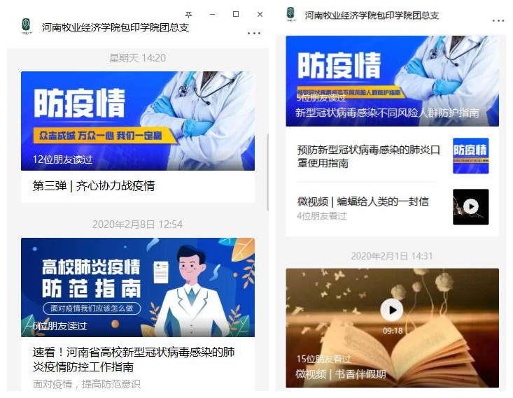 面对突如其来的疫情,辅导员老师们充分运用互联网,每天利用公众号和班级群对学生进行教育引导,引导学生掌握防疫常识,引导学生正确看待疫情;引导学生不信谣、不传谣、不造谣,并要在网上传播正能量;引导学生开展自主学习。把疫情当做教育资源,开展“以生命的名义”主题征文活动,对学生进行生命教育。