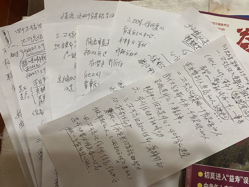 王忠义老师听说同学们要来家中访谈,十分的欣喜。在前一天,老先生就提前手写了长达九页的材料,当与同学们见面的时,老先生十分的激动,不仅正装出席,更是亲切的和志愿者队员们打招呼。交流过程中,老先生和他的老伴为同学们详细讲述了他们是如何坚守党的思想,如何和国家共同发展的故事。