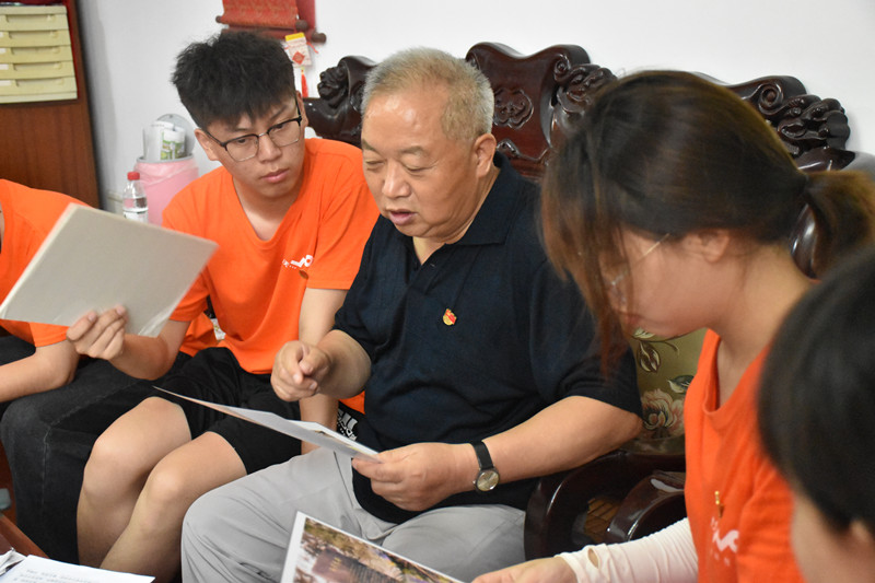 7月7日,太阳集团城娱8722“寻访身边党员·传承红色基因”榜样故事寻访服务队的队员们来到了原商专党委副书记、老党员吴殿华老师家中进行访谈慰问活动。