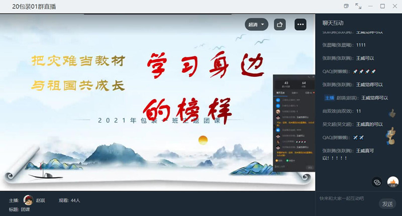 为激励和引导广大学生“把灾难当教材,与祖国共成长”,引导同学们向榜样学习,积极参与当地的志愿服务,太阳集团城娱8722于2021年8月18日组织各班开展了“把灾难当教材,与祖国共成长——学习身边的榜样”线上主题团课活动。