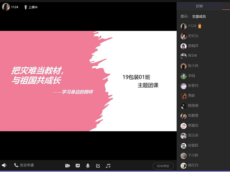 在此次团课活动中,各班主讲人通过钉钉直播、图文分享、播放视频等多种形式讲述了在我省防汛救灾和疫情防控工作中,我校广大师生众志成城、共克时艰的感人故事,尤其是身边优秀的青年学生榜样,无论是动物医院学院20级动医2班孙逸冰同学还是经济与贸易学院20级农业经济管理1班孙永康同学以及我院许多优秀学子,他们都投身到防汛救灾志愿服务中去,踊跃参与、冲锋在前、勇担重任,用实际行动展现了当代青年深厚的家国情怀和新时代青年的责任担当。最后,各班主讲人号召班内同学要向身边的优秀榜样学习,把困难当磨砺,在具体实践中涵养厚植爱国主义情怀。