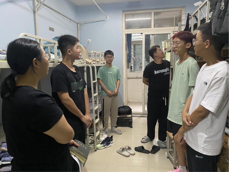 走访期间,每到一个宿舍,老师们都与同学们亲切交谈,询问同学们暑假期间的情况,关心同学们是否存在生活和学习上的问题,并鼓励同学们要规律作息、调整状态,认真对待接下来的军训课程,为新学期的学校生活开个好头。李帅堂还对同学们提出了殷切希望,希望大家通过军训能强健体魄、增强组织纪律观念,并鼓励大家在新学期团结友爱、互帮互助,珍惜在校时光,努力学习、认真生活,争当德智体美劳全面发展的复合型人才。