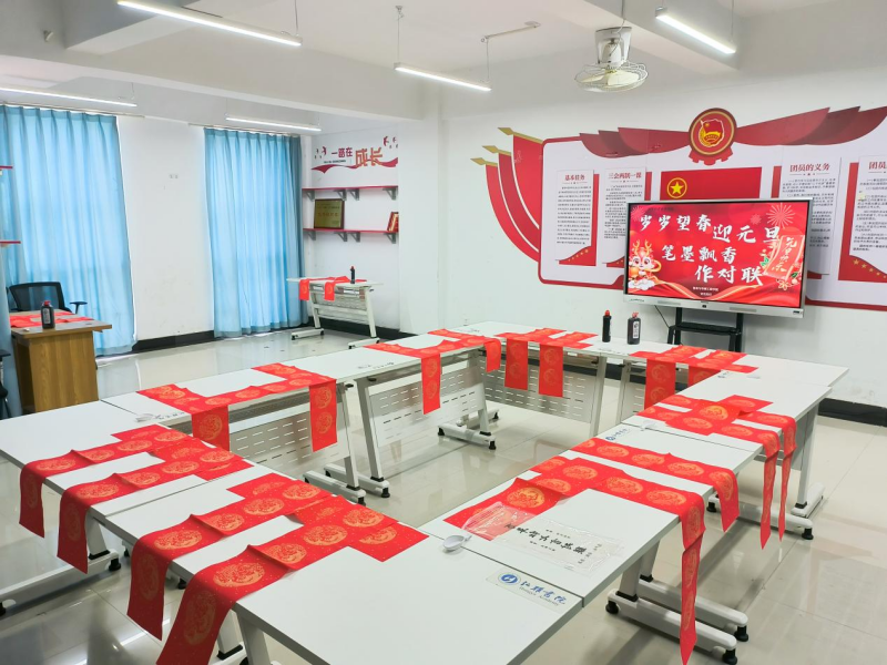 为喜迎新年的到来,弘扬中华优秀传统文化,培育学生人文素养,加强宿舍文化建设,我院于12月20日在1-2号宿舍楼连廊2206开展“岁岁望春迎元旦,笔墨飘香作对联”活动。