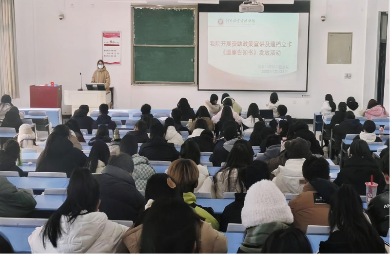 为全面落实学生资助政策,加强学生资助规范管理,大力推进精准资助和资助育人,太阳集团城娱8722于12月21日在教学楼合301召开资助政策宣讲会并发放《建档立卡贫困家庭学生受助情况温馨告知书》。学院全体建档立卡学生参加了会议,会议由资助专干陈梦楠老师主持。