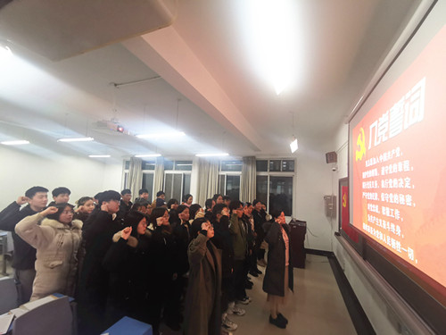 最后,大家集体起立,在段老师的带领下,全体党员及发展对象面向党旗宣读入党誓词,本次党员发展大会至此圆满结束。