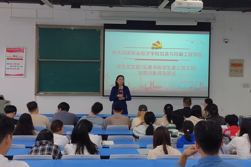 面试开始之前,张岩院长发表讲话,她表示,发展对象遴选考察工作是党员发展的重要环节之一,希望各入党积极分子能够认真看待此次遴选面试,充分展现出自己良好的素质、能力和水平。此次面试由自我阐述和临场抽题答辩两部分组成。在候选人自我阐述环节中,每位候选人围绕个人基本情况、思想学习情况、自我评价等方面进行汇报。随后,候选人临场抽取答辩环节的题目,题目涵盖党章党规基本知识和党的二十大精神等核心内容,多方面全方位考察其入党动机、思想觉悟、综合素质、对党的基本知识的掌握、对现实问题的分析等,确保公平竞争、优中选优、真正把优秀人员筛选出来,切实保证发展党员的质量和党员队伍的先进性、纯洁性。