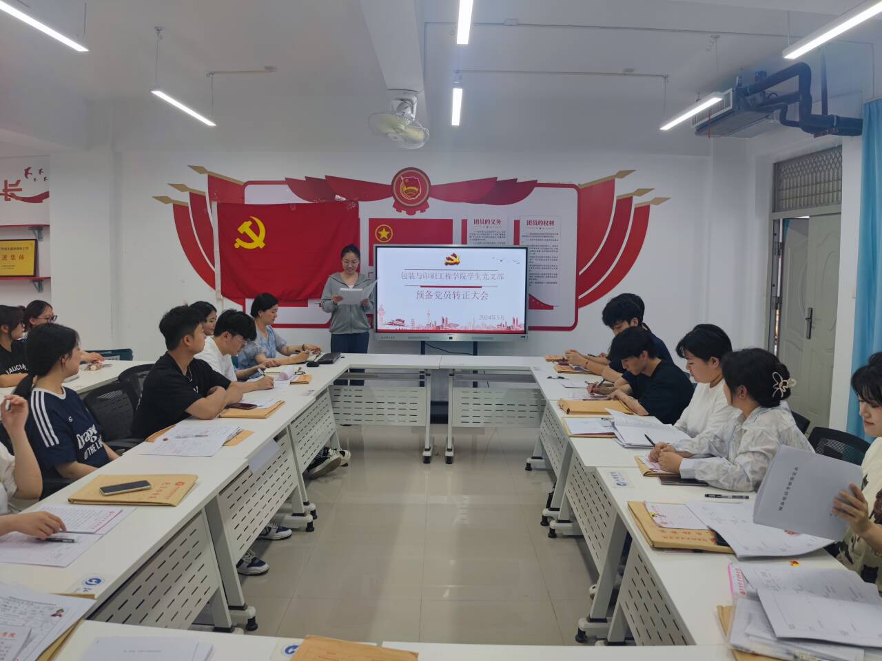 5月25日中午,太阳集团城娱8722学生党支部在1号宿舍楼2206会议室召开预备党员转正大会,本次会议由党支部书记段婧主持,全体支部党员参加。