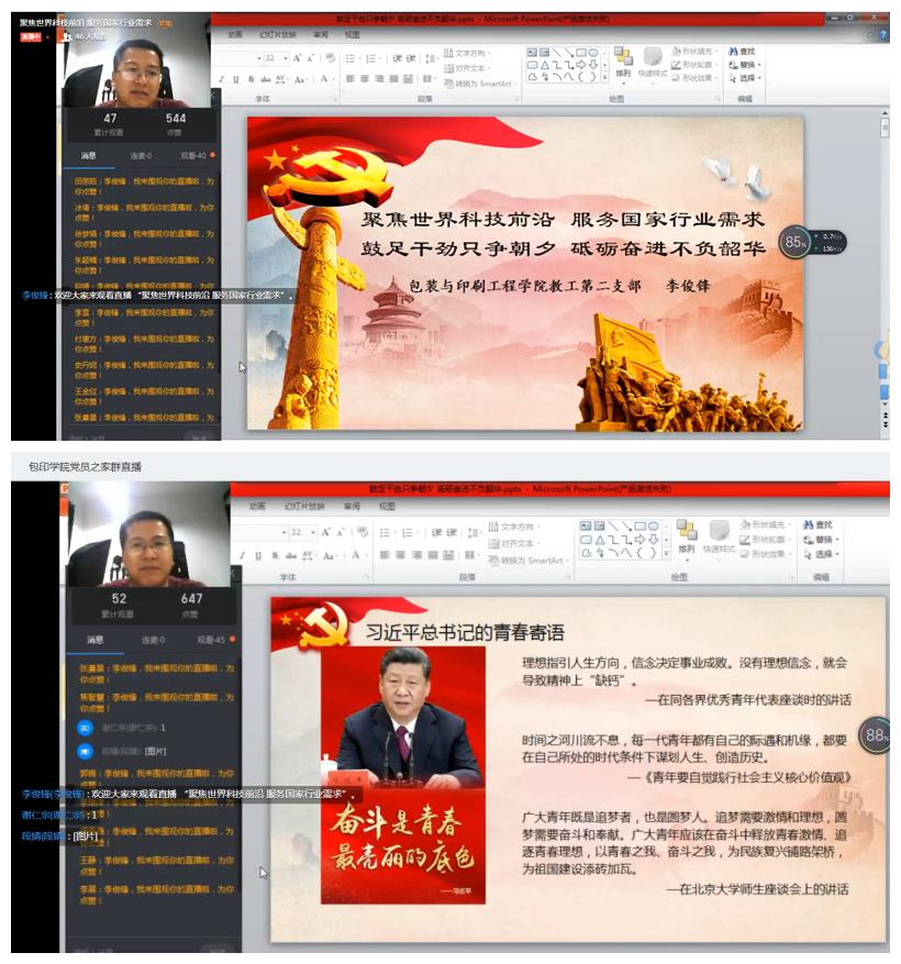 为加强我院学生党支部与教工党支部的共同建设,按照“共抗疫情、爱国力行”主题教育的通知要求,我院于5月30日晚开展了“党支部书记开讲了”主题党课活动,教工第二党支部书记李俊锋老师以《聚焦世界科技前沿、服务国家行业需求——鼓足干劲只争朝夕、砥砺奋进不负韶华》为题进行主题云党课,我院学生党支部全体党员和部分本科毕业生通过钉钉群直播进行了全程聆听和学习。