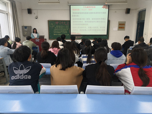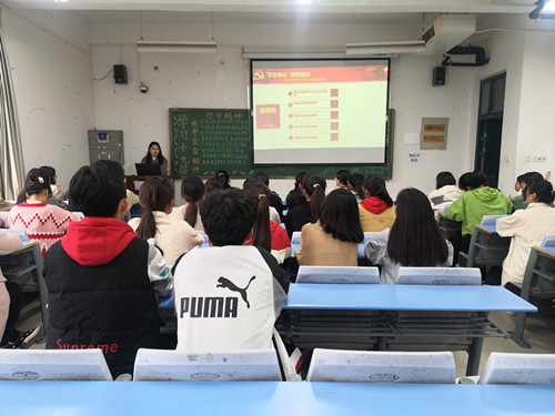 中国共产党第十九届中央委员会第四次全体会议,于2019年10月28日至31日在北京成功举行。为贯彻党的十九届四中全会精神,提高同学们的责任感和使命感,我院19级各班于近日在A414、A415、A415教室组织开展了“学习十九届四中全会精神”的主题团课。