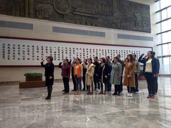 步入展馆大厅,在副处级组织员王曙雅的带领下,党员教师面对党旗、举起右手,再次重温入党誓词,对党做出庄严宣誓。在中国古代廉政文化馆、中国共产党党风廉政建设馆、新时代河南全面从严治党成果馆三个展厅的十五个展区中,我们品味了古代廉政文化思想制度之博大精深、源远流长,感佩了古代廉洁为官者的感人事迹和清风形象;领略了共产党人在党的创建和大革命时期、抗日战争时期、解放战争时期及新中国成立初期和开始全面建设社会主义时期、改革开放和现代化建设时期及全面从严治党新时代等不同历史阶段勇于自我净化、自我完善、自我革新、自我提高的坚定决心和“刀刃向内”的魄力与风采,发自内心地认识到了“西柏坡的告诫”之意义重大而深远;深刻地感受到了焦裕禄精神、红旗渠精神之伟大而不朽,近距离感触到了我省在新时代推进全面从严治党、打造政治生态绿水青山所取得的显著成效和辉煌成就。大家憧憬着中原继续谱新篇,河南更加美丽、更加出彩。