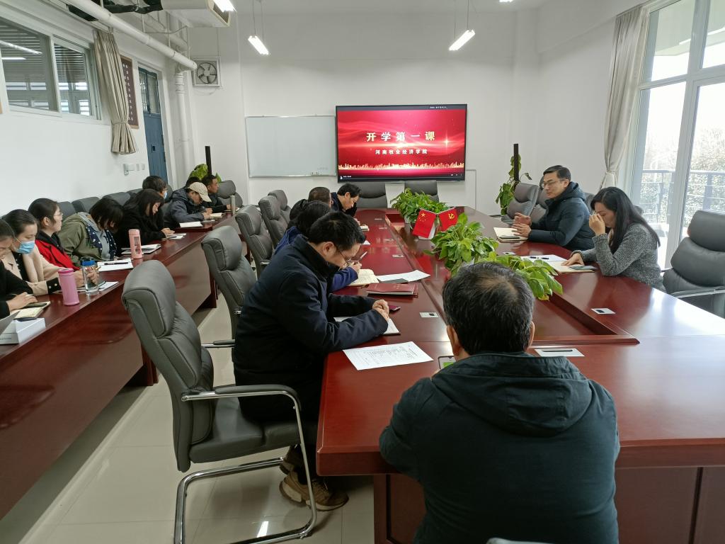 3月3日下午,我院党委组织全体教职工在尚严楼C217会议室观看《2022春季开学第一课》,此次活动旨在深入贯彻习近平总书记关于“大思政课”建设的重要指示精神,为党的二十大胜利召开营造浓厚氛围,强化使命担当,为奋力谱写新时代中原更加出彩的绚丽篇章贡献力量。