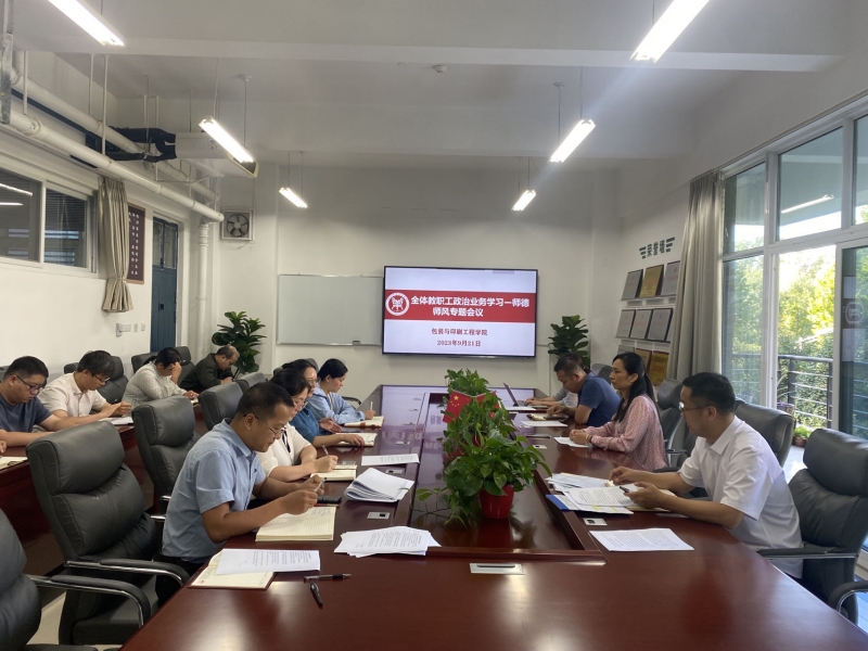 会议传达学习了《教育部等七部门印发〈关于加强和改进新时代师德师风建设的意见〉的通知》、《关于在全省教育系统开展“奋进新征程志做大先生”师德主题教育活动的通知》(教师〔2023〕64号文件)等文件精神,详细解读了《关于开展师德师风教育专项活动的实施方案》(校宣〔2023〕2号)等文件要义,对学院师德师风教育专项活动进行了安排部署。