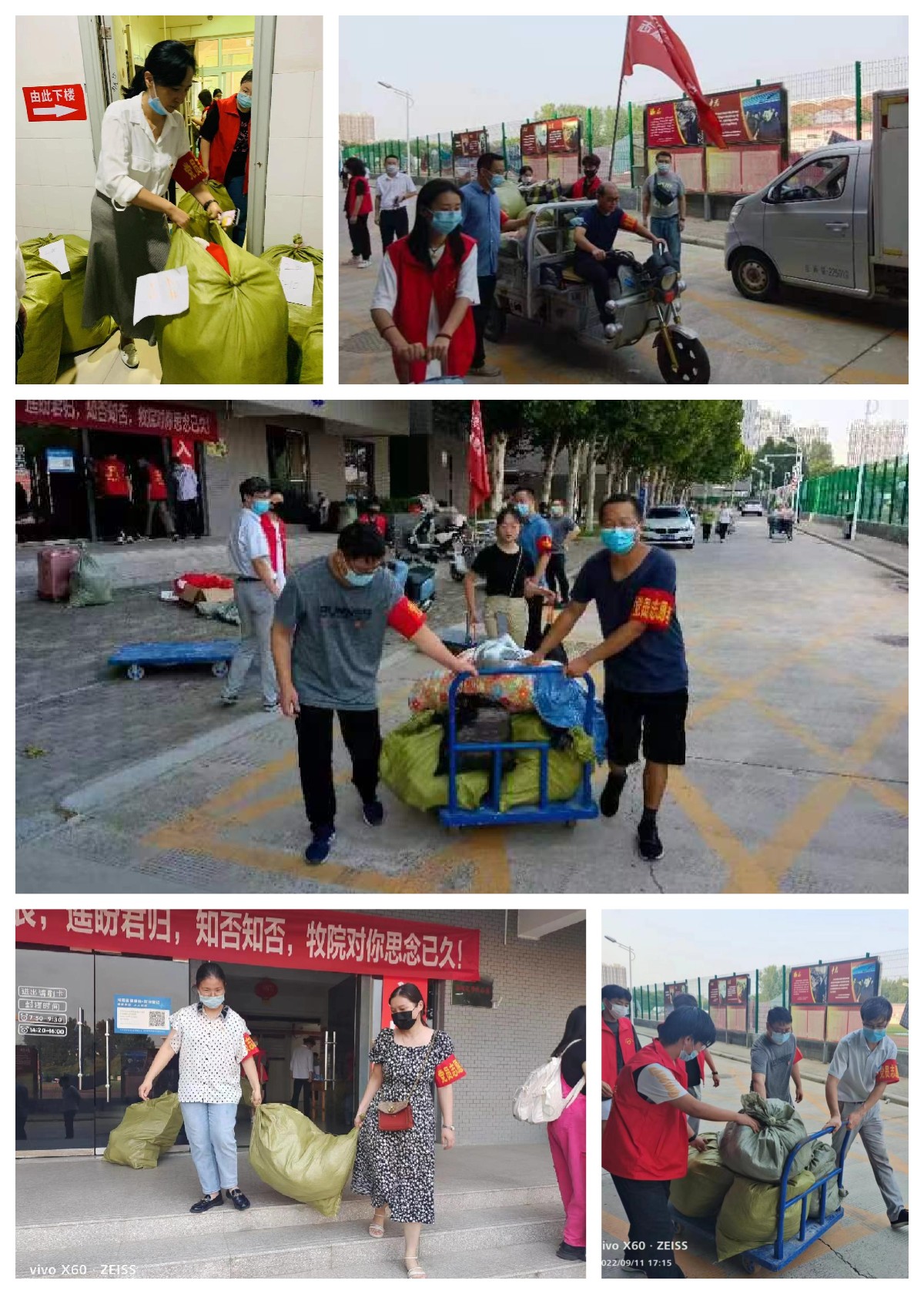 由于时间紧,任务重,女生搬迁距离较远,太阳集团城娱8722教工党员志愿者满怀热情、踊跃参与、率先垂范;学生党员志愿者清点行李、搬运包裹、辛苦高效;同学们准备充分、互帮互助、你搬我帮。尤其是党员教师们积极参与、团结协作,楼上楼下一遍遍地跑,一车车地搬,使学生再一次深深体会到了学院细心、体贴、温暖的关怀。