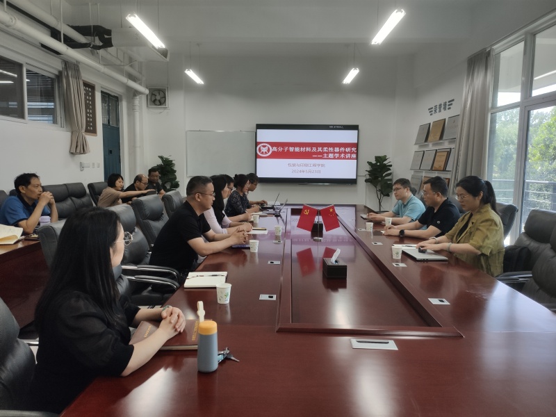 刘旭影教授团队的杨操教授介绍了团队研究方向、师资队伍、科研平台等基本情况,阐述了学院在教育科技人才一体推进、国家战略科技力量、关键核心技术攻坚战等方面的做法与成效,详细汇报了团队研发的高阻隔涂层在生物医药器械领域的应用等产学研方面的宝贵经验。胡晓光教授以“Blatter自由基及其阻变存储性能研究”为题,介绍了有机光电磁材料和光致变色材料,包括半导体、磁性材料、有机晶体管、存储器、光探测器、变色油墨、防伪、光响应/光控催化等方面的研究进展。惠飞研究员以“基于低碳材料的柔性信息存储器件和纳电子技术研究”为题,围绕导电、半导体和介电等柔性电子材料以及印刷、涂布、纺丝等成膜工艺与技术方面进行详细的介绍与分享。