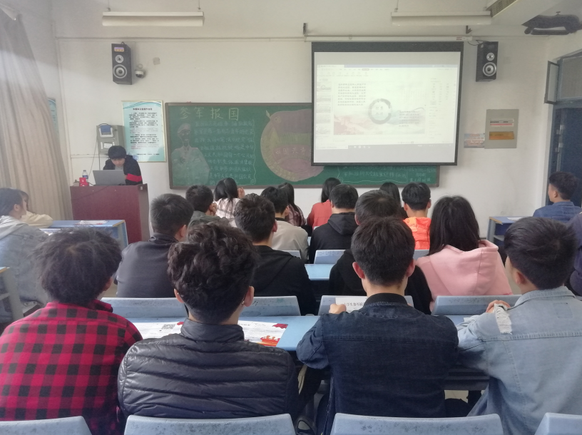 包装一班张明霞,范亚丹为同学们讲述大学生参军的意义,通过身边大学生入伍的实例鼓励大家积极参加入伍。包装二班田峻帅领读关于参军入伍的相关宣讲,慷慨激昂,极大鼓舞了大家的激情。印刷班张占岗同学带领同学观看武装部征兵宣传视频,使大家更深入解大学参军入伍政策。