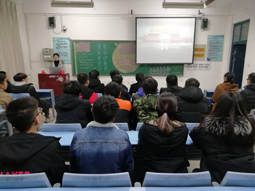 法律是人民安全的保障,是每个人都应该遵守的规范,而青年是未来法治社会的骨干力量,宪法教育作为法治教育的重要内容,是约束广大青年学生的行为准绳,是引领其践行社会主义核心价值观的重要途径。在此次团课活动中,各班团支书通过不同形式让青年团员了解了宪法的含义和设立宪法日的目的和意义。其中,18包装一班的团支书带领同学们回顾新中国的立法史,了解了中国宪法的变迁。18包装二班的团支书向同学们阐释知法守法的重要性,普及防拐防诈骗的通用知识。18印刷班团支书则选择宪法的适当章节、条款,组织学生集体朗读,在朗读中加深对"宪法是国家根本法"的深刻认识。