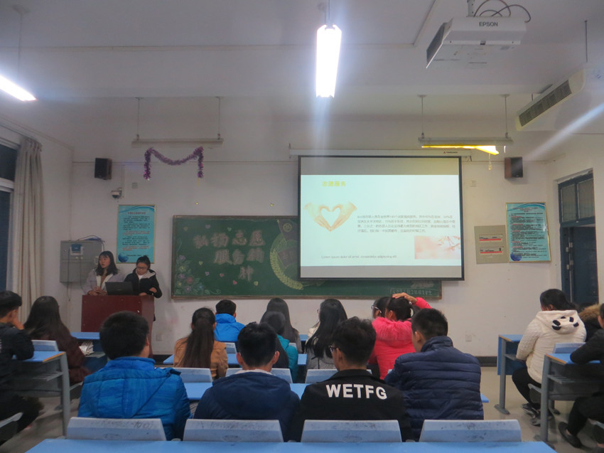 在第31个国际志愿者日来临之际,为了让同学们进一步领悟和践行志愿服务精神,让我院大学生成为践行社会主义核心价值观的表率,太阳集团城娱8722于2016年12月1日下午在a220,a221等教室举行“弘扬志愿服务精神践行社会主义核心价值观”主题团课。