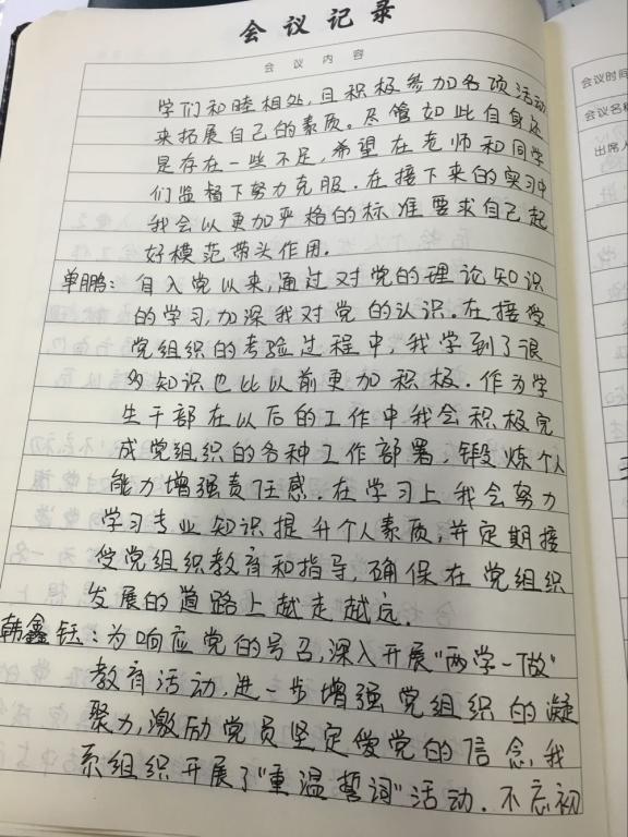 会后,学生支部书记聂莉对大家的发言及近期的学习情况做了点评。她要求大家要充分利用党员之家网络学习平台,利用课余时间加强理论学习,尤其是在参与答题活动竞赛过程中,及时发现学习的盲区与不足,把党的理论知识尤其是党章学深学透,不断提高自身的政治理论素养。同时要结合自己在思想生活工作方面存在的差距和问题,制定个人下步的努力目标和改进措施,以实际行动争做合格党员。