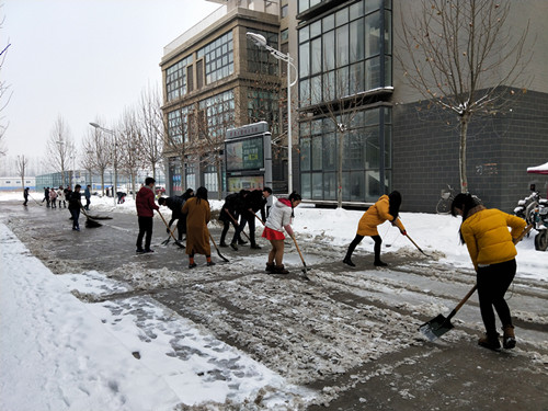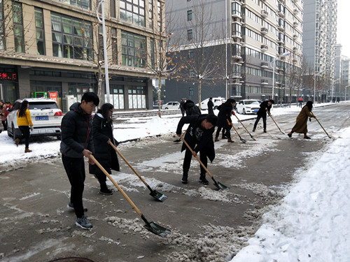 2018年连续几天的大雪洋洋洒洒,美丽雪景给同学们的生活增添一番乐趣,但与此同时,积雪也给同学们的日常生活带来了许多不便。为了清除校园道路积雪,方便同学们的出行,更好的展现包印学子的青春活力与志愿服务精神,我院于1月7日上午在二餐厅门前的道路上开展义务扫雪活动。