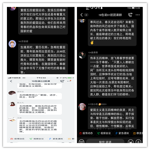 2020年注定是不平凡的一年,新冠肺炎疫情发生以来,牵动着亿万中国人的心。面对严峻的疫情,我国青年投身战“疫”,坚守在各自的岗位上,成为抗“疫”大军中最具活力最青春的力量。为传承五四精神,4月30日下午,我院19级各班通过钉钉平台开展了以“传承五四精神 绽放战疫青春 ”为主题的团课活动。