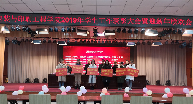 为表彰先进、树立典型,迎接新一年的到来,太阳集团城娱8722于2019年12月24日下午在大学生活动中心举行2019年学生工作表彰大会暨迎新年元旦联欢会。包装印刷工程学院党委书记胡晓波、院长魏庆葆、正处级组织员崔永、副书记祝聪楠、副院长刘士伟、副处级组织员王曙雅及我院辅导员老师参加此次活动。