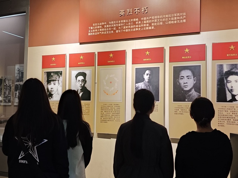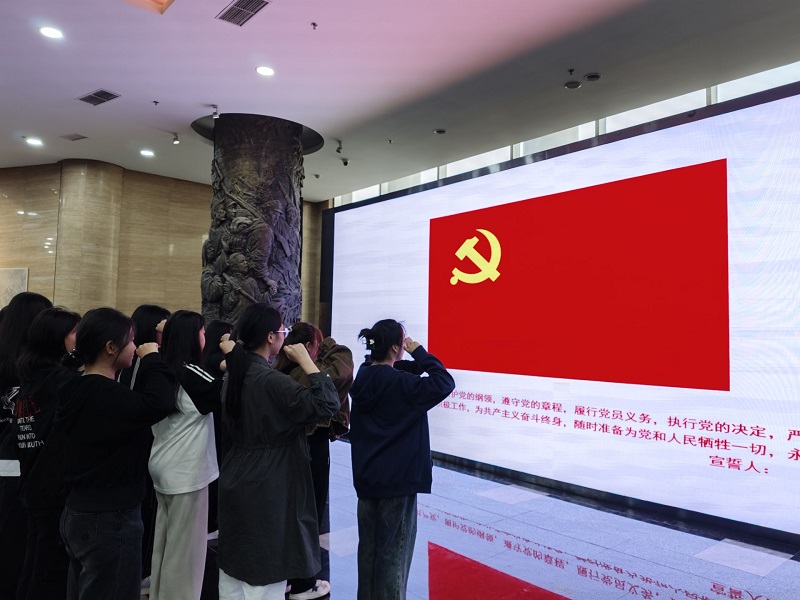 活动当天,在烈士纪念碑广场前,同学们庄严肃立,为革命事业英勇献身的烈士们静默致哀,深切缅怀革命先烈的丰功伟绩。随后,大家依次环绕瞻仰烈士纪念碑并敬献亲手制作的纸花,向已逝英烈致以崇高敬意,表达深深的哀思。祭扫仪式结束后,同学们参观了革命烈士纪念馆多个展区,重温革命英烈的英雄事迹和峥嵘岁月,深刻感受到了中国共产党创立的不易和艰辛、早期共产党人身上所体现的坚定和无畏,更加深刻和具象地理解了忠诚、奋斗和牺牲的意义。在纪念馆内,面对鲜红的党旗,在党员带领下,同学们高举右拳,重温对党的铮铮誓言,进一步坚定对党忠诚的崇高信念。