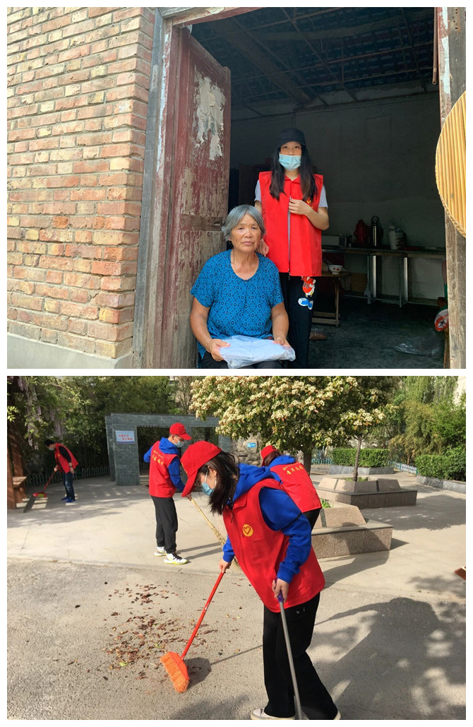 我院志愿者们深入贫困地区,开展一系列脱贫志愿活动。位于刘店乡杨庄村的王旭同学与爱心协会的领导们一起,为全村86名贫困户捐赠衣物。在村室院内,贫困户们陆续前来领取上衣和裤子,部分贫困户出行不方便,志愿者们就将其送到家里,帮助他们换上崭新的上衣T衫和裤子,这次衣物捐赠活动,不仅为贫困户带来关怀,还为贫困户解决日常换洗衣物减少困难。居住在郑州市中原区的钱甄同学,以小区采访的形式,了解到居民尽自己所能为防疫工作捐赠物资,为身边人普及防疫知识,在与居民的交谈中,切身体会到在这场无硝烟的战争中,全国上下齐心协力,共同抗击疫情,用爱与责任告诉我们这就是中国力量。