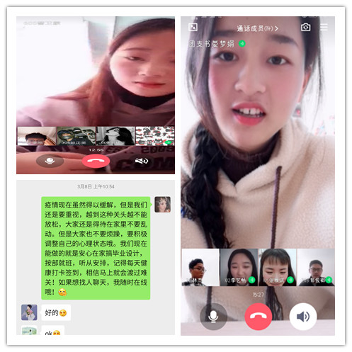 此次活动以QQ、微信、钉钉视频等形式开展,各党员志愿者详细地询问了宿舍长各宿舍成员疫情期间在家的情况,如:疫情期间在家有没有遇到焦虑、恐慌等问题,如有遇到是怎样缓解的。针对同学中存在的缺乏自律、懒于学习、静不下心看书或沉迷手机网游等情况,从而情绪上出现了无聊、烦躁、消沉、抑郁、易怒等各种不同的困扰,党员志愿者们积极给出建议,进行了详细了心理疏导,为大家答疑解惑。活动接近尾声时,针对目前大家存在的不良情绪,党员志愿者们总结了三条建议:
