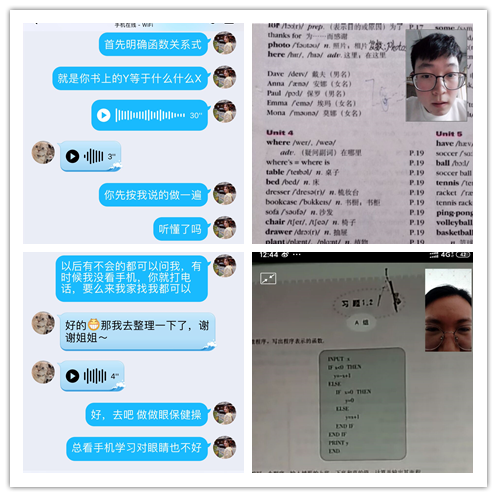 “哥哥,你看我这个英语发音对吗?姐姐,你看我这道题算的对吗?”疫情期间,这是我院部分学生党员进行学习辅导活动的日常。为了帮助网络授课期间无法得到有针对性性辅导的小朋友们,解答其学习困惑,3月以来,我院袁天鑫、朱庆珍、于冬青、李瑞瑞、刘素华、陈晗等几位学生党员主动为身边有需要的学生们提供志愿学习辅导服务。