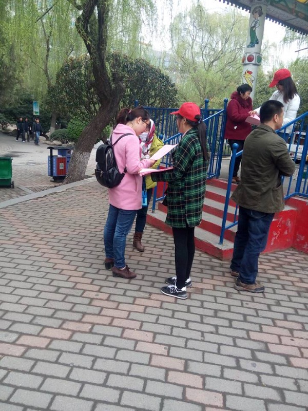 本次活动以“雾霾污染不容小视,晴朗天气从我做起”为主题,针对目前郑州城市空气质量的恶化,雾霾天气增多,雾霾的危害等问题,加之人们对雾霾天气的不了解和不知道自身该从何做,该怎样做的问题,同学们通过自己对雾霾知识的了解和学习,专门制作了宣传册,利用发放宣传册加上讲解的形式,向城市居民去阐述并让人们去学习,去了解,去重视,也通过这些方式去告诉大家,减少城市雾霾污染,一次低碳出行,减少颗粒物的排放等,可以从平常的小事做起,也要从自己做起。