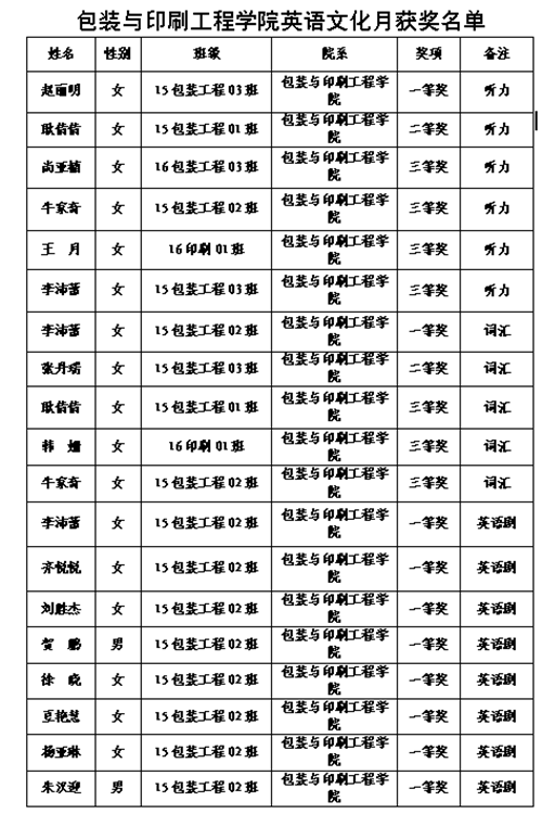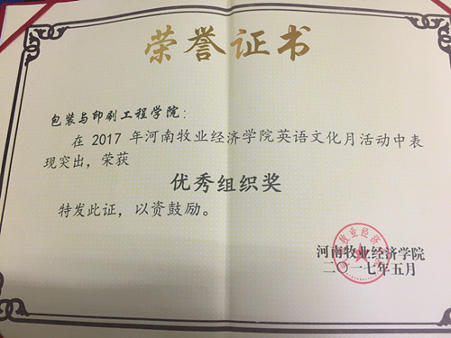 为了提升我院学生的英语水平,营造良好的学习英语氛围,从4月—五月,我院积极组织学生参加了由学工部、校团委、公共外语教研部联合举办的2017年太阳集团网站8722英语文化月活动。日前,此次活动落下帷幕,经过班级选拔和院系推荐,我院参赛学生在激烈的比赛中发挥出色,我院15包工2班的李沛蕾学生荣获词汇比赛一等奖、15包工3班赵丽明获听力比赛一等奖,选送的课本剧《To See You Is My Best Present》荣获课本剧比赛一等奖,同时我院还获得了优秀组织奖的荣誉。