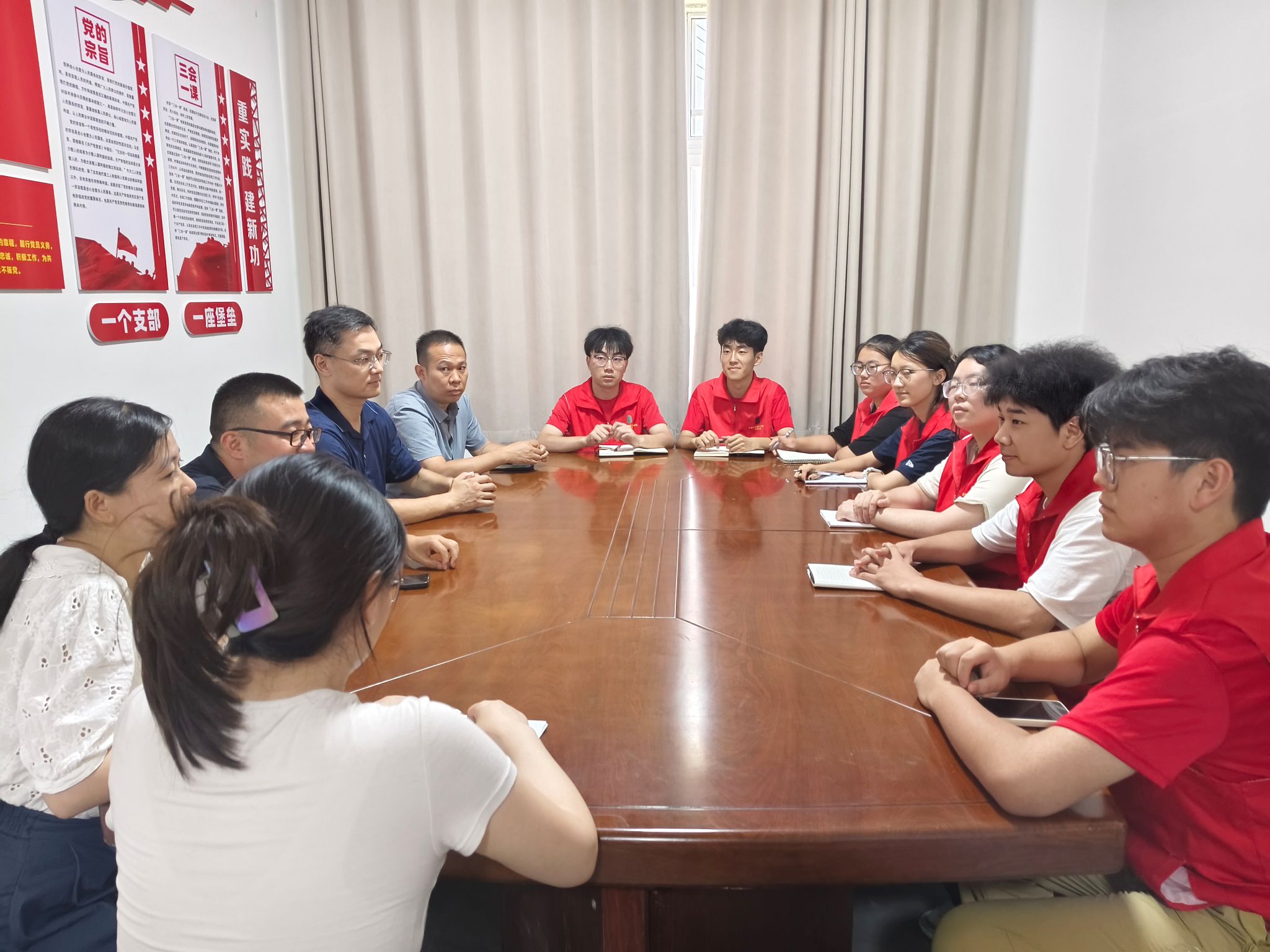 7月4日,太阳集团城娱8722“青春心向党·践行振兴梦”薪火乡传实践团在新蔡县孙召镇王岗村委党员群众服务中心会议室召开分享交流座谈会。院党委书记杨军,学工部副部长、王岗村驻村第一书记张彤,党委副书记李帅堂,带队指导教师段婧、陈梦楠和全体队员参会。