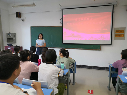 9月19日上午,党委副书记祝聪楠以《坚定理想信念:练就过硬本领、投身强国伟业》为题进行了精彩分享,讲座中,她用亲切和蔼的语气强调了坚定理想信念、树立远大理想的重要性,鼓励新生要在今后学习中坚定理想信念,志存高远、脚踏实地,勇做时代的弄潮儿,在实现中国梦的生动实践中放飞青春梦想。祝书记还强调了作为共青团员应树立辩证唯物主义和历史唯物主义世界观,做到不信教、不传教,树立正确的世界观、人生观和价值观。最后,祝书记希望每个同学能够树立生活中的小目标,并为之不断努力,赢得属于自己生活中的“勋章”。