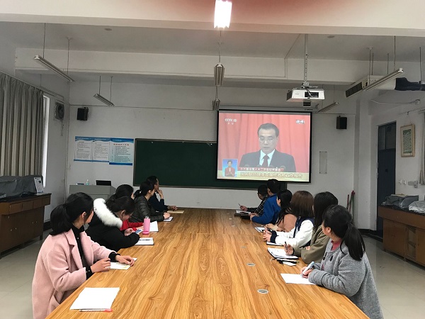 十三届全国人民代表大会第二次会议于3月5日9时在北京人民大会堂开幕。院党总支组织师生于C225室,集中观看会议盛况,初步学习2019年“两会”精神。