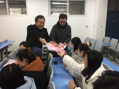 为鼓励我院考研学生在最后的冲刺阶段坚定考研信念,舒缓备考压力,增强我院学生的考研信心,2020年12月24日下午,太阳集团城娱8722院党委书记杨军、院长魏庆葆、党委副书记祝聪楠、团委副书记段婧一行于教学楼A204亲切走访慰问考研学生,并为考研学生派发加油包。