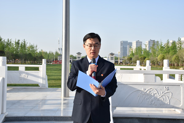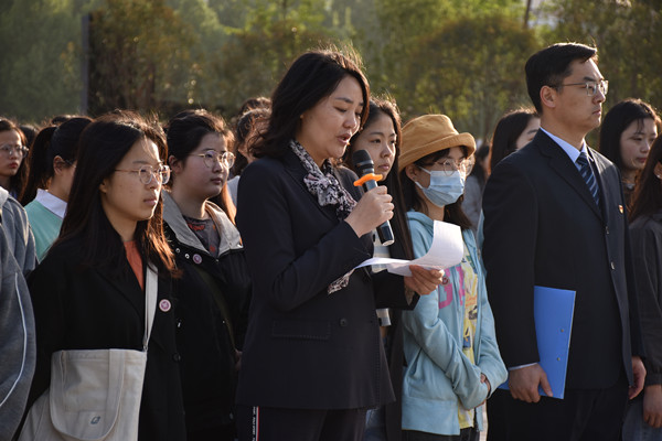 为迎接建党一百周年,同时迎接即将到来的本科教学工作合格评估,4月19日早7点,我院在图书馆广场前隆重举行“青春聚力迎评估,献礼建党一百年”主题升旗仪式。院党委书记杨军、副书记祝聪楠、团委副书记段婧、全体辅导员老师和全体学生参加此次仪式。升旗仪式由院党委副书记祝聪楠主持。