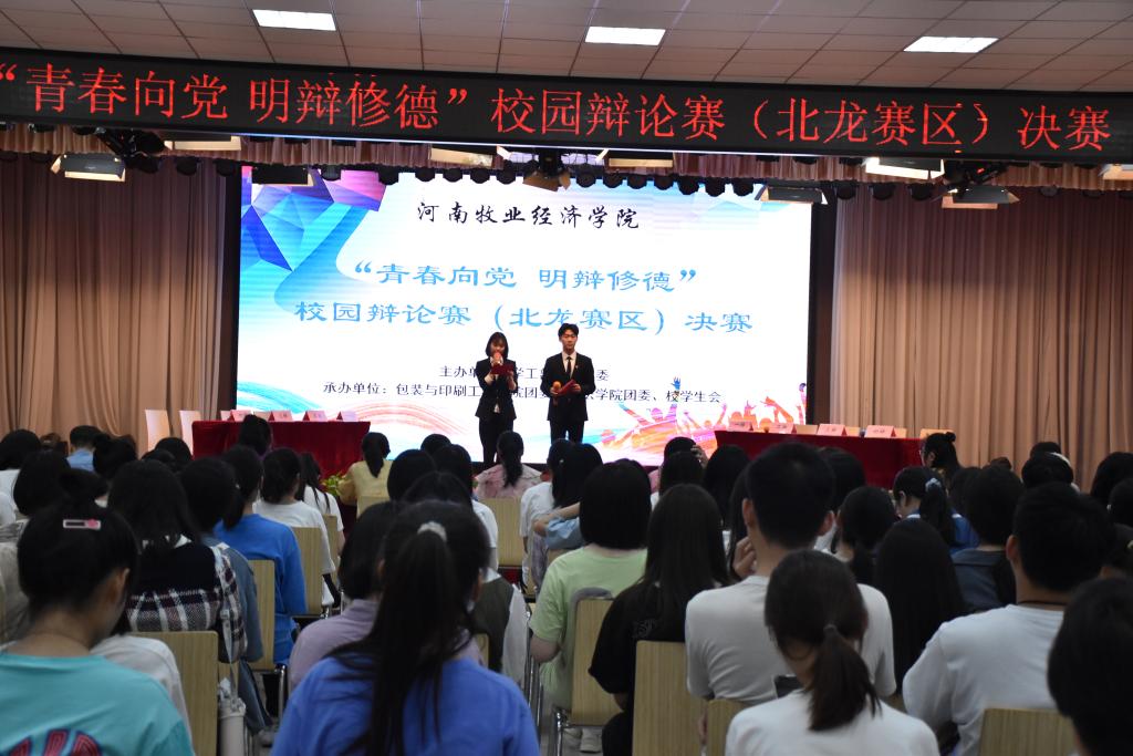 5月13日,“青春向党 明辩修德”校园辩论赛(北龙赛区)决赛在龙子湖校区大学生活动中心圆满落下帷幕。此次比赛由校学工部、校团委主办,太阳集团城娱8722团委、文法学院团委和校学生会承办,旅游学院、太阳集团城娱8722、动物医药学院、外国语学院200余名学生代表参加,龙子湖校区各学院团委副书记和辅导员老师作为评委出席了本次活动。