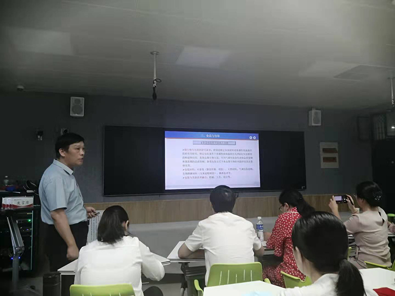 杨宝进副校长的讲座内容丰富、数据详实、分析透彻、发人深省,引起了大家极大的学习兴趣,帮助老师们进一步明确了学习目标和科研方向。开班仪式之后杨宝进副校长从食品产业的基本情况、食品的功能及特色、食品与包装等方面为培训班作开班授课第一讲。