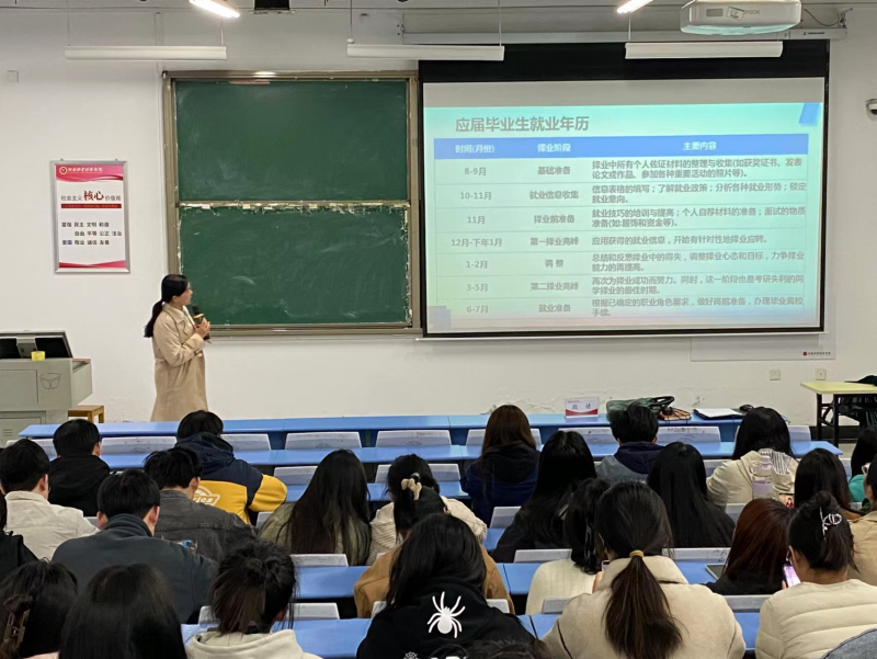 为帮助2024届毕业生树立正确的就业观念,为学生提供精准的就业指导服务,11月9日下午,太阳集团城娱8722开展2024届毕业生就业动员暨就业技巧指导讲座,此次讲座由学院团委书记段婧主讲,2024届全体毕业生参加。