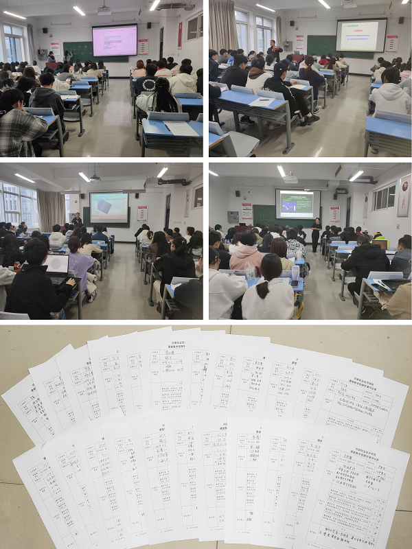 观摩课活动中,教师们都展示了自己独具特色的教学风格。在《包装应用力学》课堂上,李菲老师以学生在黑板上答题的形式对前节内容进行了回顾复习,通过实际案例加强了学生对应力、应变、弹性模量等基础知识的应用能力;在《三维建模软件》课堂上,苗红涛老师以饮料瓶的建模为案例,讲解了Solidworks软件的特征化、扫描、放样、相交、拔模等工具使用,并用电饭煲的建模强化了学生对知识的掌握;在刘士伟老师《色彩学》的课堂上,刘院长针对印刷班学生的特点,从“如何计算教室中电灯棒对课桌的三刺激值”问题出发,讲解了复色光、色光匹配实验、三刺激值计算公式等内容,内容应用性强;在李俊锋老师《色彩学》的课堂上,李博士根据包装工程班的学情,重点讲解了CIE标准色色度体系、颜色匹配实验等内容,并在课程内容中融入了辩证思维。观摩的教师们则认真聆听、仔细记录,不时发出会心的微笑,并积极参与到学生的讨论中。