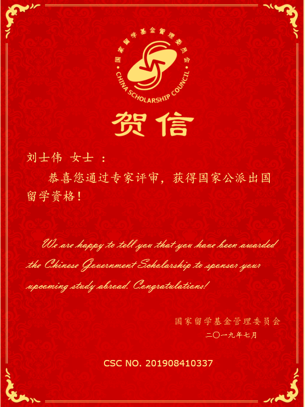 刘士伟获国家公派留学资格