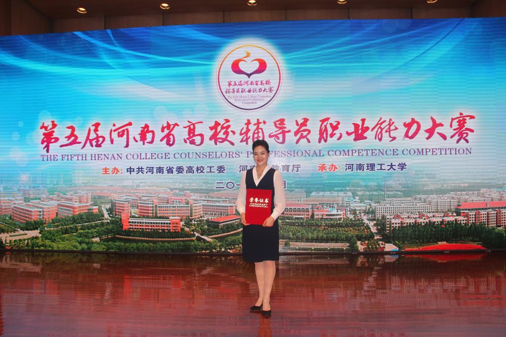 2016年3月,学院党委副书记祝聪楠获得河南省第五届辅导员职业能力大赛一等奖