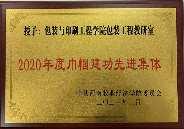 我院包装工程教研室荣获学校“2020年度巾帼建功先进集体”荣誉称号